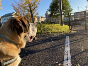 ノワくん、武蔵くんとお外にトレーニング❗️
