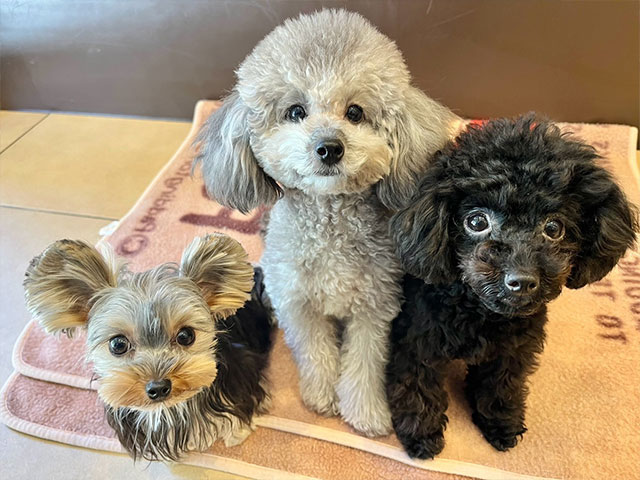 トイプードル(ダークくん、オレオちゃん)、ヨークシャテリア(ナロちゃん)